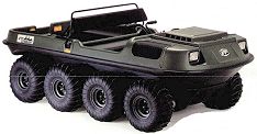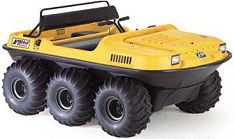 8 wheel drive amphibious all terrain vehicle with 4 cycle overhead valve V-Twin air cooled Briggs & Stratton engine, electronic ignition, 18 HP, 570 cc and load capacity of 1000lbs. Features: